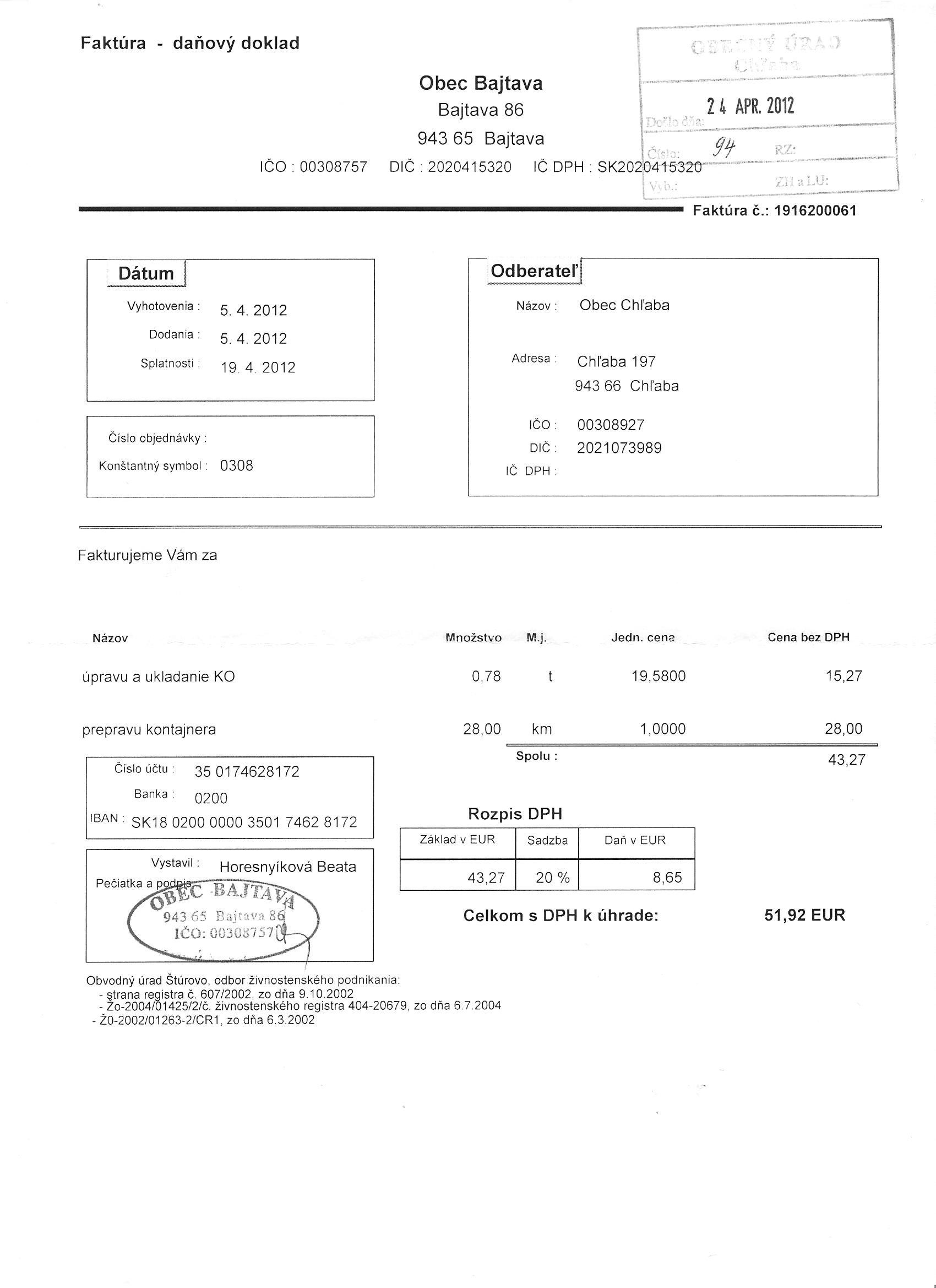 Došlá faktúra 94/2012